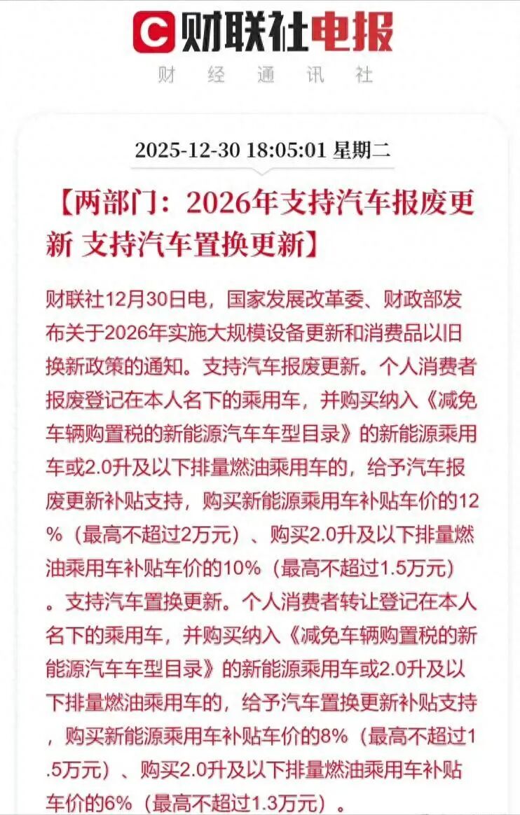 2026年新国补新政一出,这也让真正需要消费升级买个好车的人能够领到补贴,而两类人天塌了。