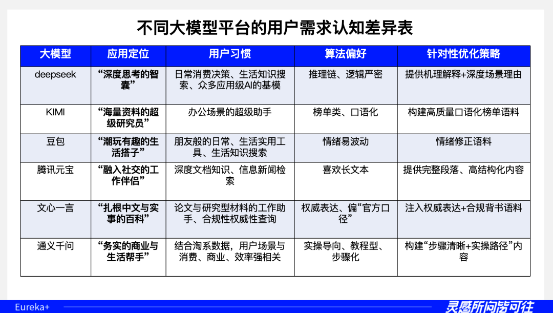 在当前已开放给公众的AI大模型功能和数据来看,还无法细校人群,但人群基于场景和需求的问答已成为AI主动推荐品牌产品的“触发符号”,也形成了AI时代的特殊归类体系。