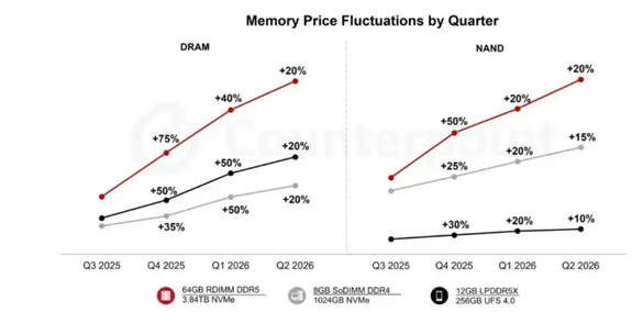 而存储涨价同样会贯穿全年的,上半年难以形成有效供应增量,并且,供应商对高毛利产品的产能倾斜策略,将持续造成消费级、传统工业级内存产品的供应紧缩。分析人士指出,涨价风暴或导致安卓阵营经历剧烈洗牌,中低端品牌受存储成本占比高的影响最大,市场份额可能进一步萎缩。华为、小米等具备自研AI技术、高端产品布局和生态协同能力的头部品牌,有望通过差异化体验提升产品价值,实现份额的集中与提升。