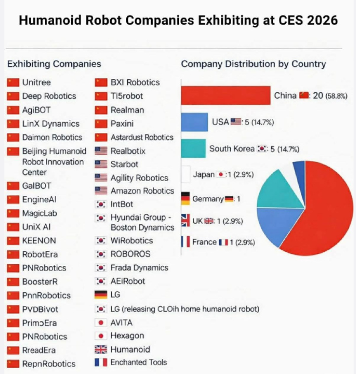 参加CES2026的机器人厂商大多来自中国