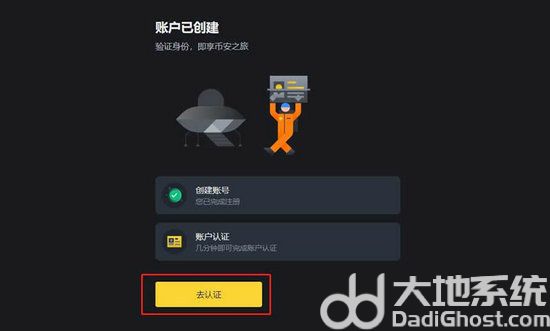 4、账号创建后,点击【去认证】