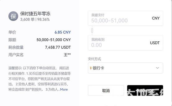 5、在弹窗中输入购买金额,点击【购买usdt】获得付款方式,向对方付款,等待对方放币即可