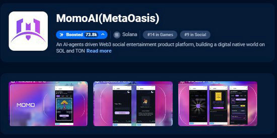 在这样一个充满活力的生态系统中,MOMO AI凭借其独特的游戏和社交融合功能,快速崛起,成为TON生态中最具影响力的项目之一。目前DappRadar 排名第 17 位,Solana 生态系统排名第 1 位,TON生态游戏排名第 1 位。
