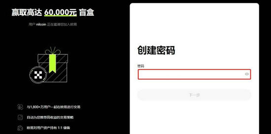 1、打开欧易OKX交易所官网,选择手机号注册,输入手机号即可领取盲盒(使用邮箱注册需要进行手机号验证,推荐使用手机号注册)