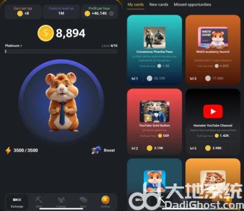除了邀请好友外,您还可以透过购买和升级您的卡片来增加每小时的利润。当日购买三张隐藏卡即可免费赚取500 万金币。