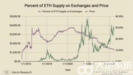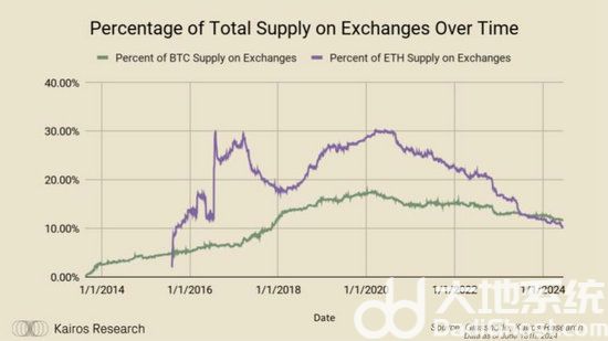 例如,当观察 ETH 的供应时,它显示出在交易所持有的总供应量的百分比持续下降,甚至低于比特币。更有趣的是,交易所的供应下降趋势几乎与 2020 年 5 月 Uniswap v2 的推出完美对齐。