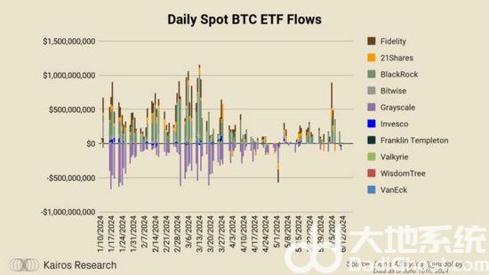 尽管 Grayscale 有大量卖出,但我们仍然看到 ETF 总体上的净流入,无论是美元还是 BTC。