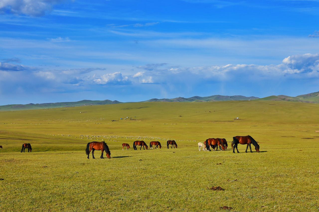 在错落有致的蒙古包的映衬下,天空纯净明亮,草原辽阔壮丽,空气清新,牛羊成群。鄂尔多斯草原是镶嵌在这片辽阔神奇土地上的一颗璀璨明珠!